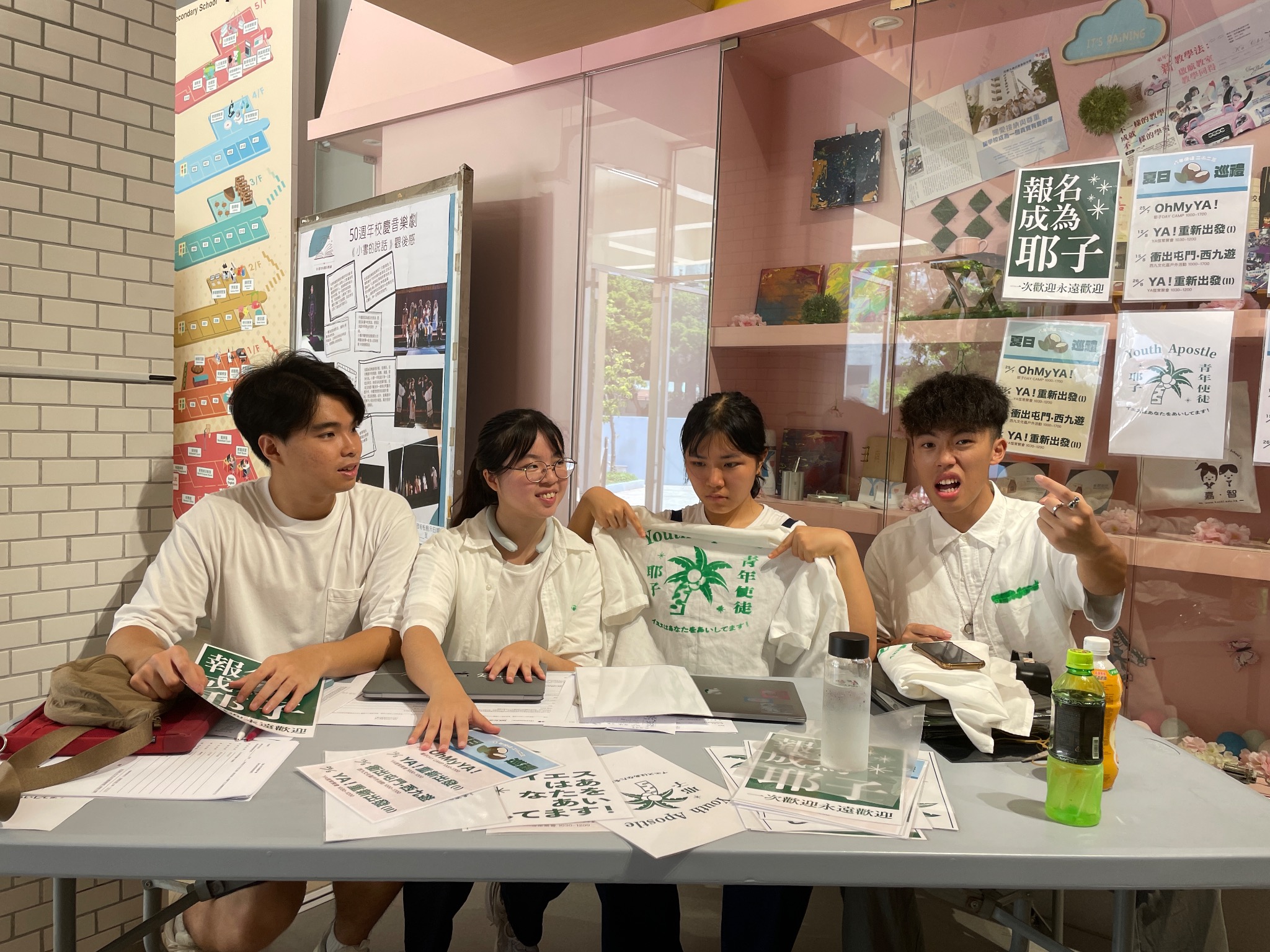 "Youth Apostle (YA) was established by me and several other graduates at PAOC Ka Chi Secondary School. The purpose is to lead more students to believe in God through regular services and school activities, and to help more students in need. The funding for this organization is entirely provided by us."
